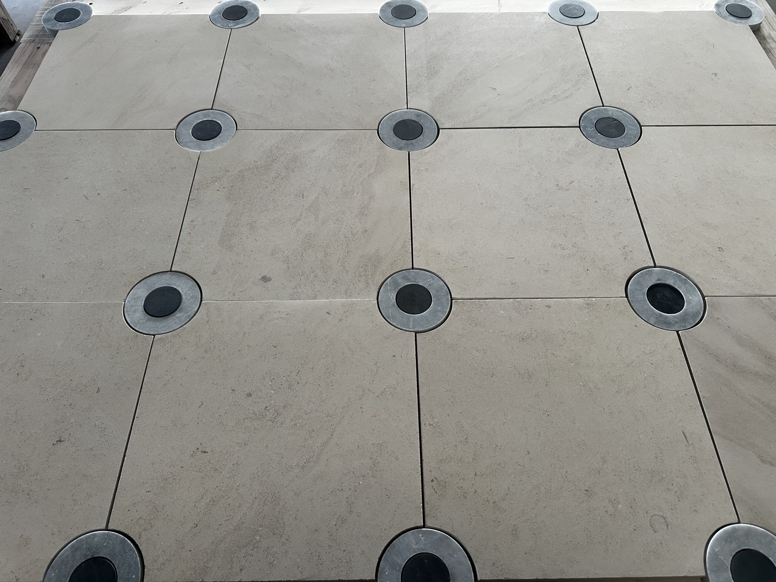 Le dallage octogone à cabochons est un revêtement de sol caractérisé par des dalles octogonales reliées par des cabochons ronds. Avec des finitions arrêtes droite ou vieillie.