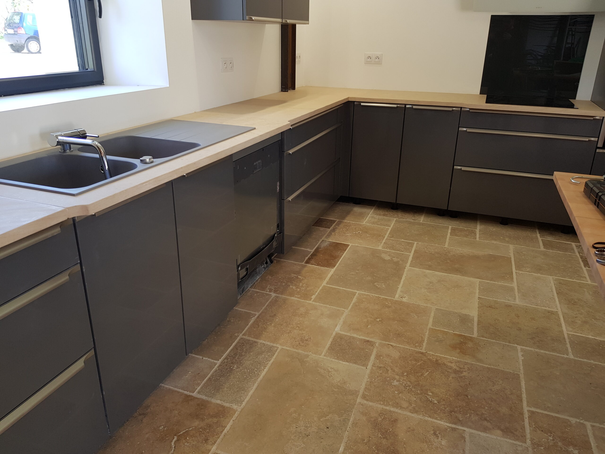 • Épaisseur dallage travertin 1,2 cm.