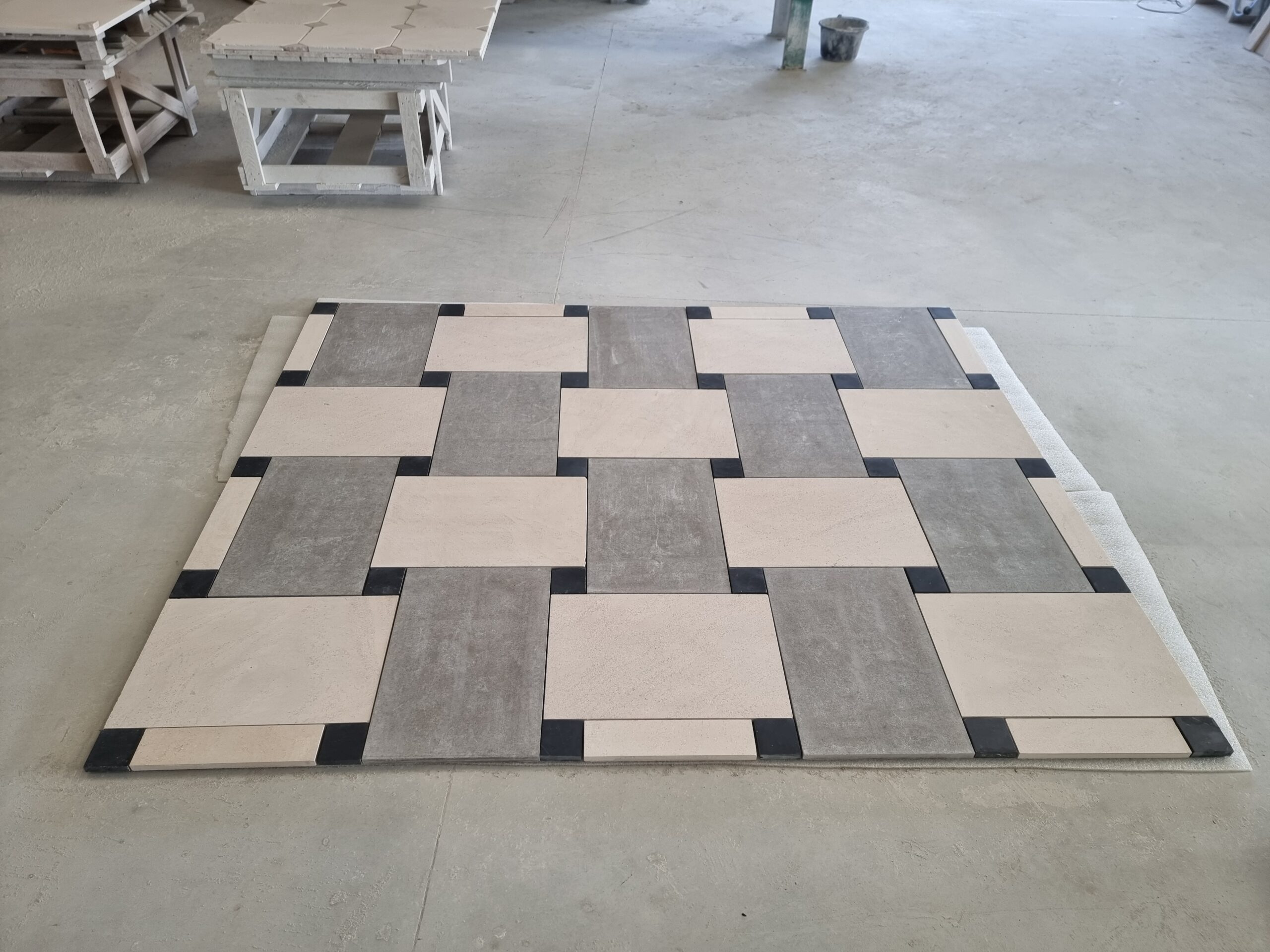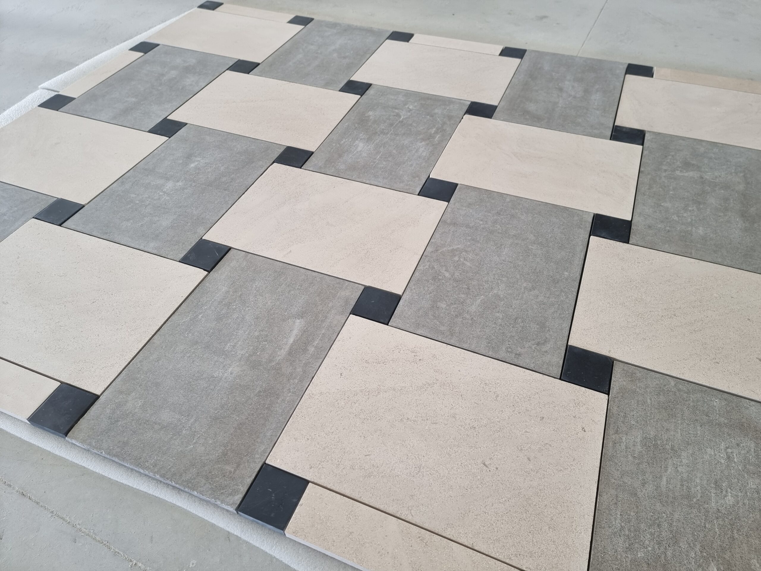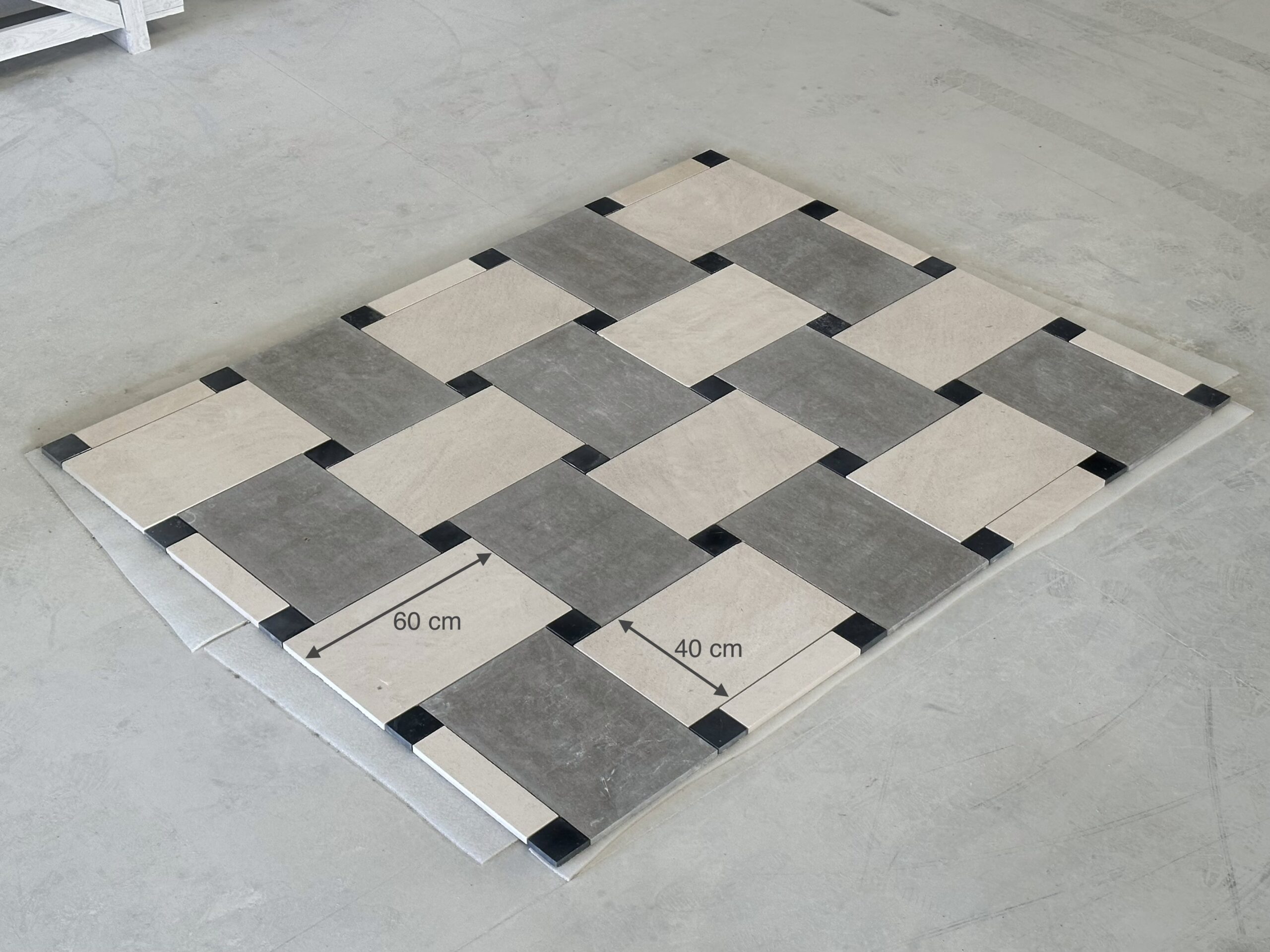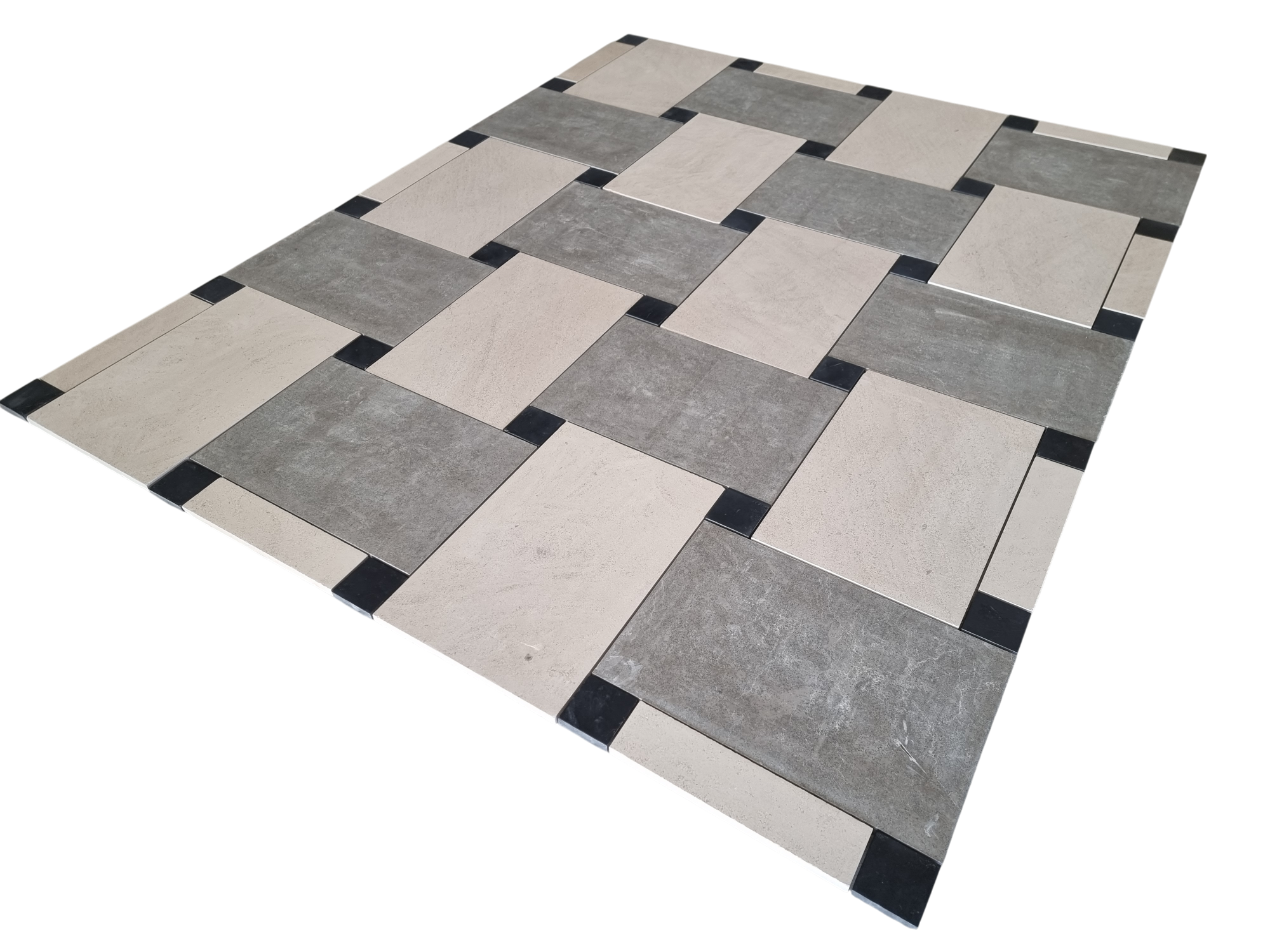 Voici un dallage trompe-l’œil à la fois étonnant et sublime, conçu pour harmoniser votre intérieur dans des tons gris et beige, ou beige seul.